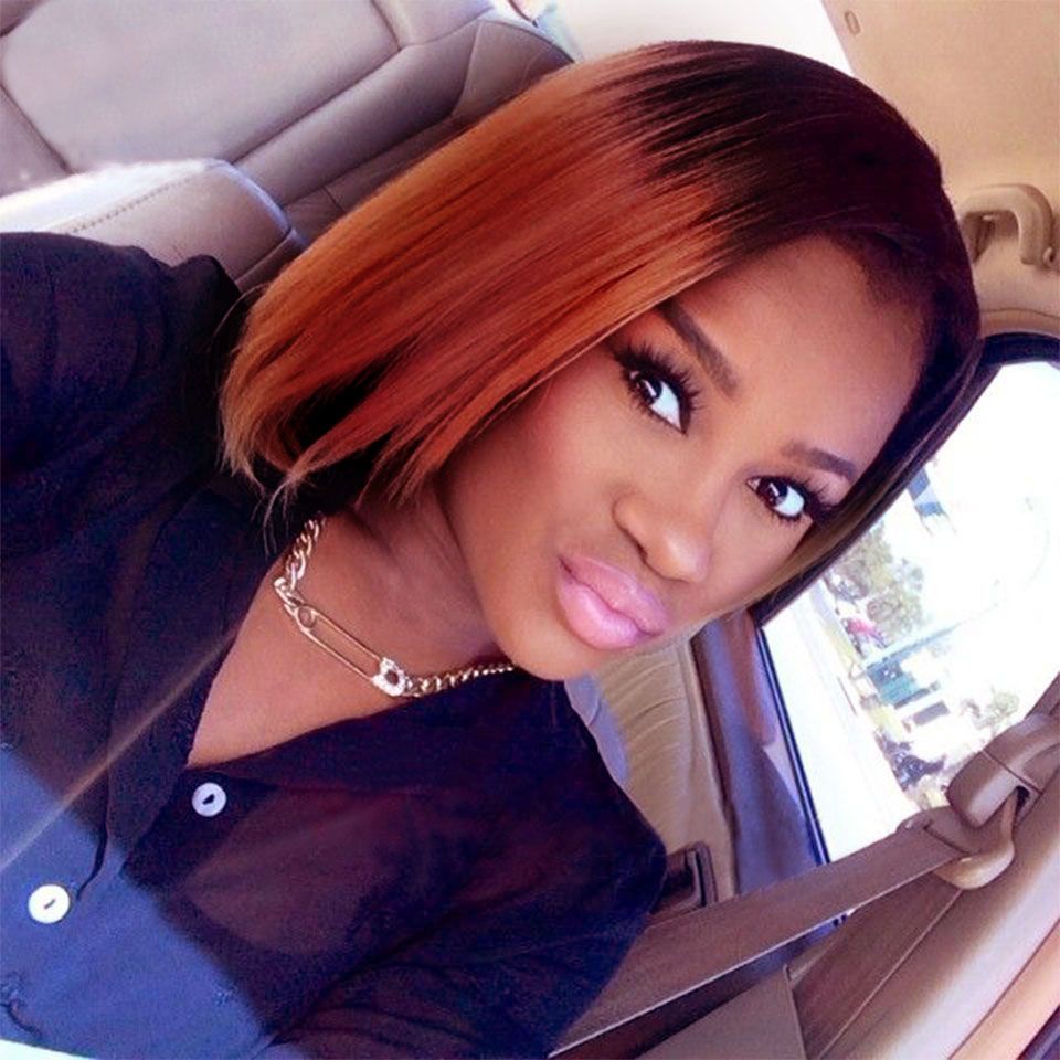 Orange Ombre Human Hair Weave Brazilian Virgin Straight T1b 350 Bob Hair Weave Straight Wet And